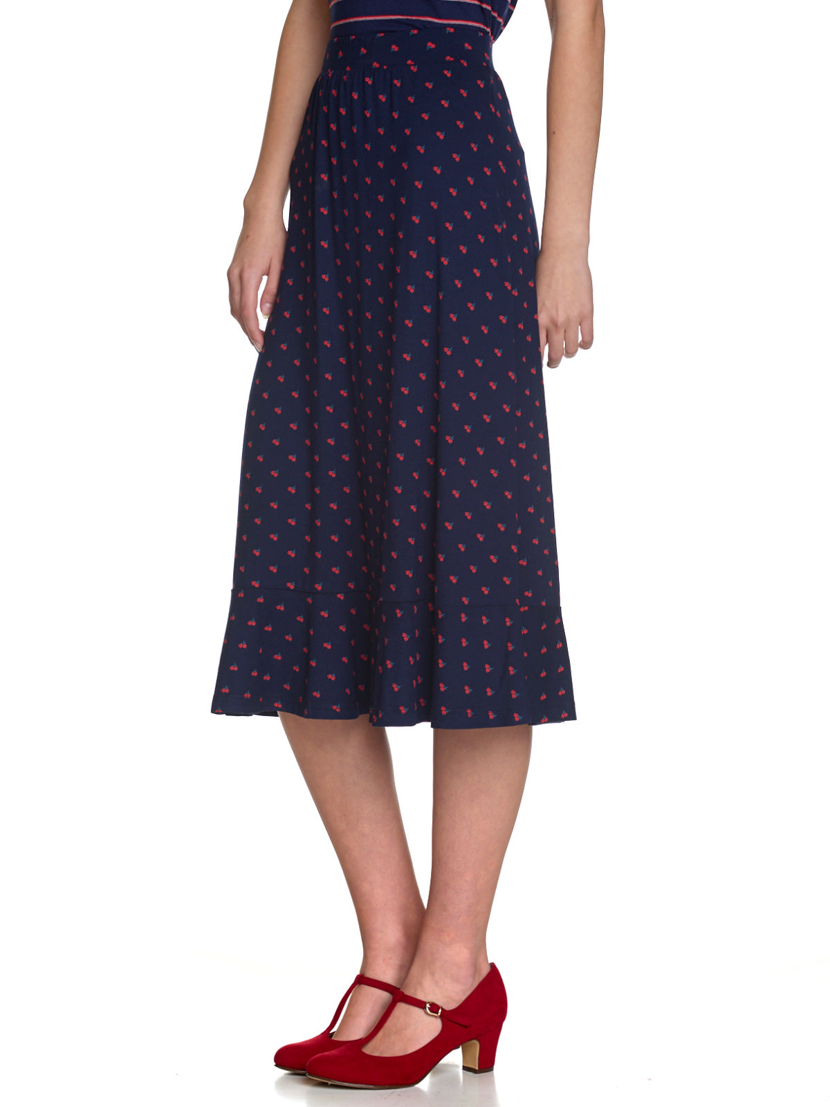 Der Rock ist locker geschnitten und hat einen breiten Gummibund, der ihn besonders bequem macht.