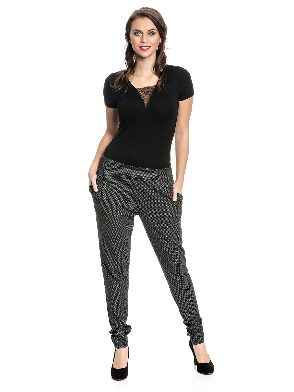 Diese Hose ist ein echtes Allroundtalent. Ob im Büro oder für die Freizeit, diese schwarze Hose mit weißen Pünktchen macht zu jedem Anlass eine tolle Figur.